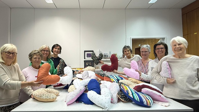 Die DiDaGos haben sich am 18.11.25 in kleiner Runde zum Nähen von Herzkissen in der Nähwerkstatt von Sabine Aniol getroffen, um Herzkissen für an Brustkrebs erkrankte Frauen zu nähen. Das Kissen hat die Form eines