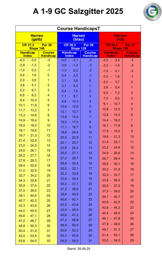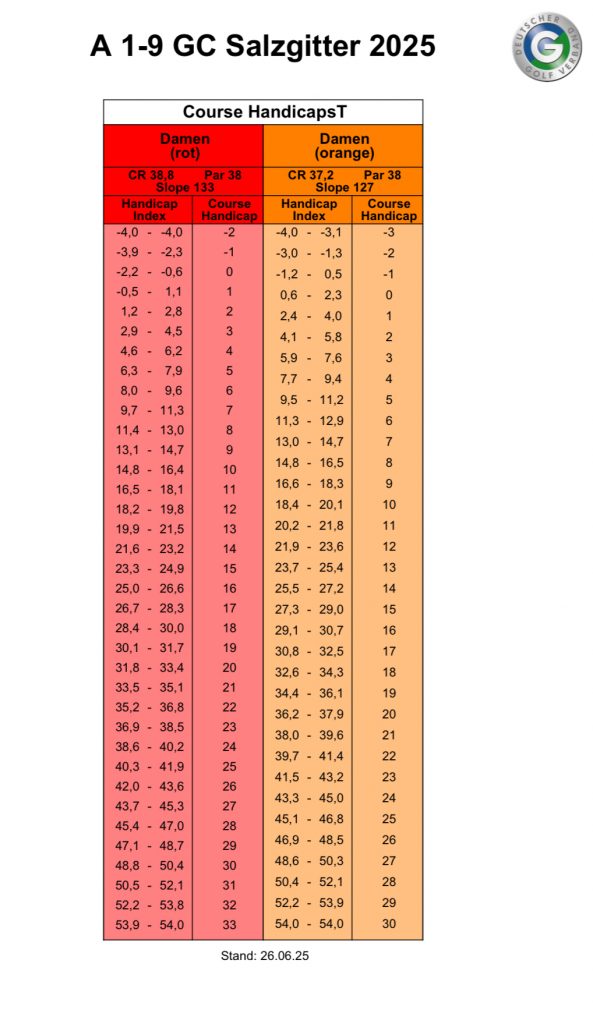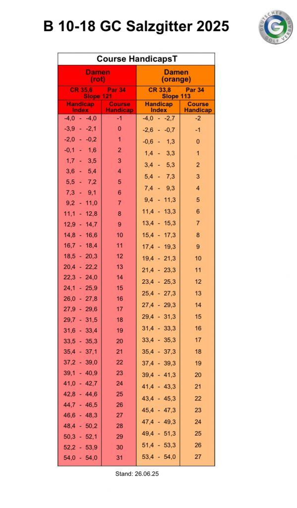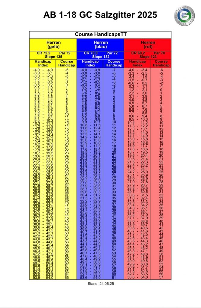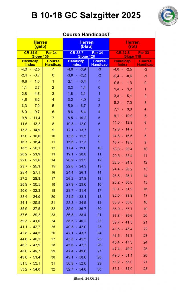 Benutzen Sie die vorstehenden Spielvorgabentabellen, die Sie durch Anklicken auch als PDF laden können. Die Jahreszahlen beziehen sich auf den Zeitpunkt der Berechnung oder Änderung des Ratings, nicht auf die Gültigkeit der Tabelle.